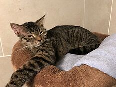 Die Kleine ist eine richtige Schmusekatze. Sie ist ganz aufmerksam bei Besuch und freut sich über Zuwendung. Das Tigermädchen ist „mittelalt“, kastriert und gekennzeichnet, und wird demnächst nochmals dem Tierarzt vorgestellt. Dann könnte das Katzenmädchen in ein liebevolles Zuhause mit späterem Freigang ziehen. Sie kann nach Verabredung im Daktari kennengelernt werden.