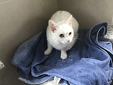Kater Frido ist ein fast weißer Kater und 11 Jahre alt. Er ist lieb, kastriert, entfloht, entwurmt und gekennzeichnet. Frido braucht ein wenig Zeit und Pflege, dann wird er wieder zu einem bildschönen Kater werden. Momentan erholt er sich im Daktari. Wer möchte dem armen Kater ein Zuhause schenken?
